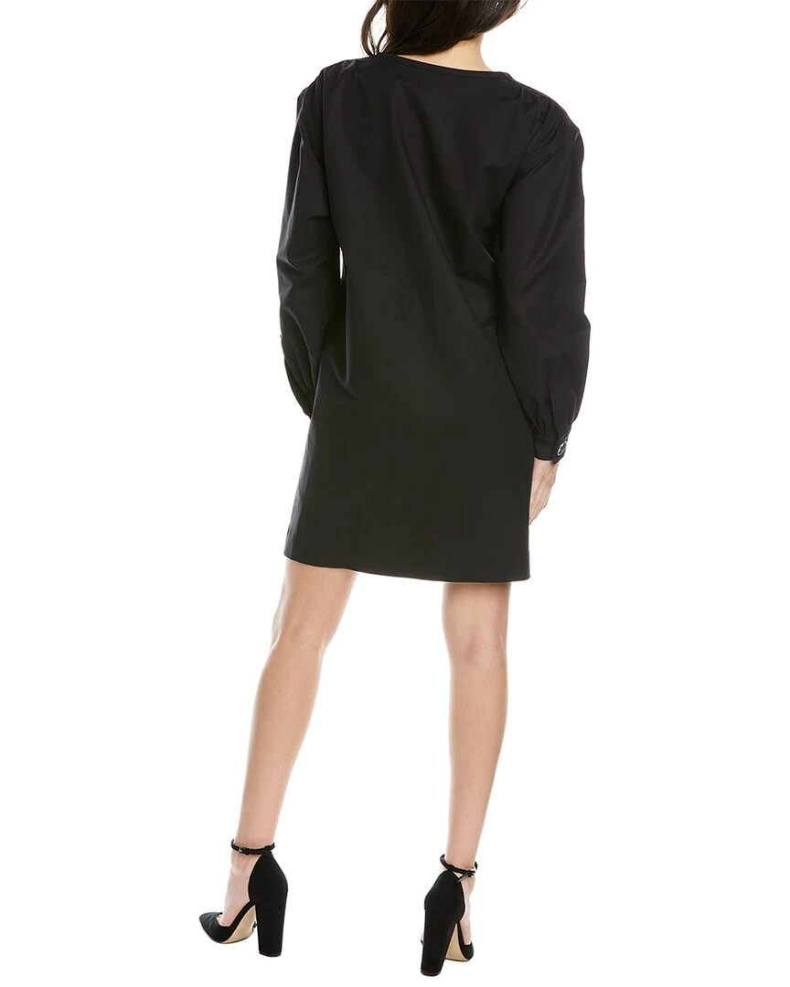 - Oversized Patch Pocket Shirtdress in black with structured design, crewneck, blouson sleeves, button cuffs, and four front pockets