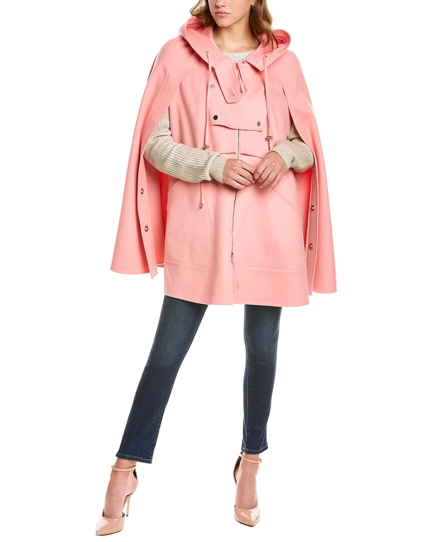 - Short Patch Pocket Wool & Cashmere-Blend Parka Cape in melon