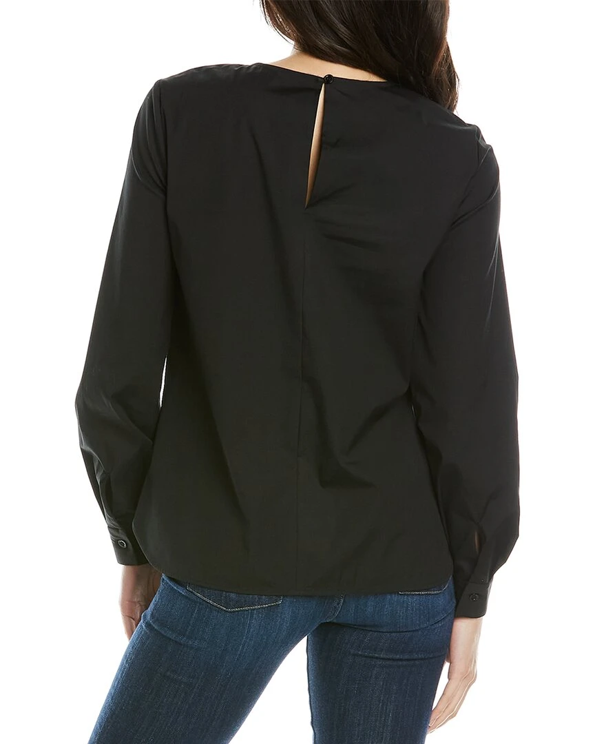 - Wide Sleeve Knot Shirt in black with V-neck with knot detail, button cuffs, and rounded hem